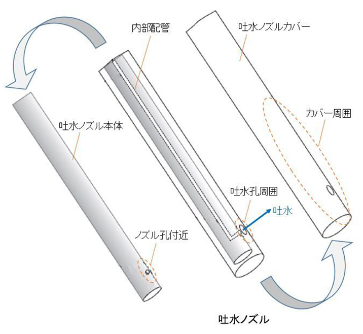 | 吐水孔周辺 | カバー周囲 | ノズル孔付近 | 内部配管 | ||
