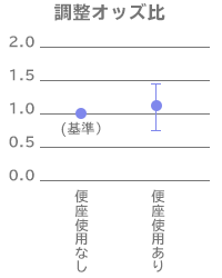 温水洗浄便座の使用のない人での早産発生の起こりやすさを1(基準)とすると、温水洗浄便座の使用のある人でのオッズ比は1.04となりました。