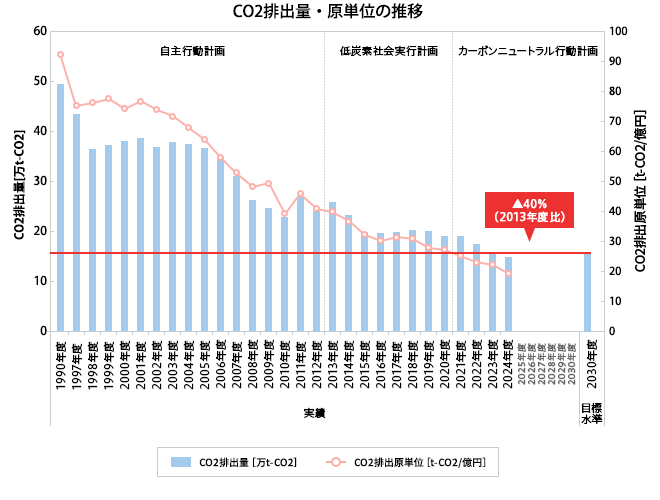 - 低炭素社会実行計画(フェーズⅠ、Ⅱ)の目標を更新し、公表