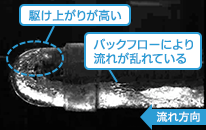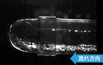 ■下記の動画は、曲りの位置の違いによる洗浄水のみを流した時の状態をハイスピードカメラで撮影し、