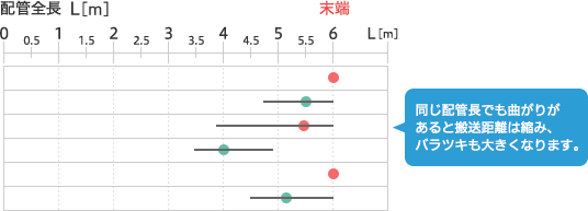 ■配管形状:ストレートおよび等間隔曲り配管(配管長6m)