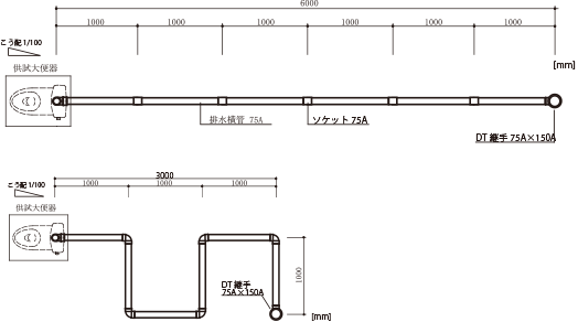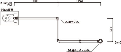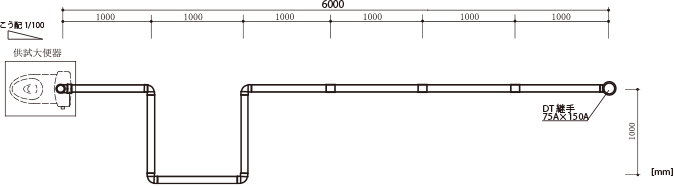 便器直下の曲りから次の曲りまでの距離は1ⅿ以上確保することをおすすめします。