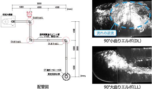 | 配管 形態 | エルボ 種類 | 代用 汚物 | 平均搬送距離 [m] |